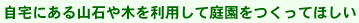 石や木材など自宅にもとからある部材を有効活用した例です。